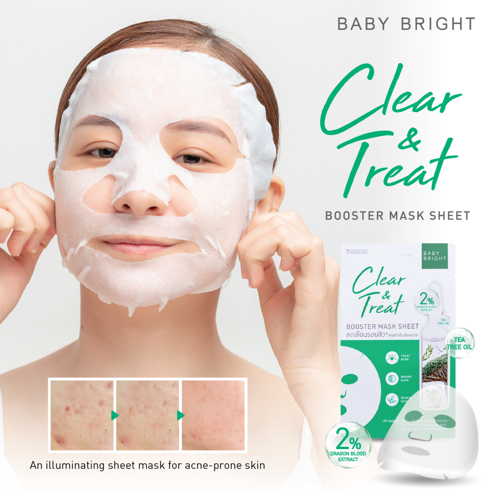 نقدم قناع Baby Bright Clear & Treat Booster Booster المصمم خصيصًا للأشخاص ذوي البشرة الحساسة. يحتوي على زيت شجرة الشاي وحمض الساليسيليك لمنع تكون حب الشباب والتحكم في الزيوت الزائدة ، هذا القناع الورقي يحافظ على وجهك خاليًا من الزيوت .