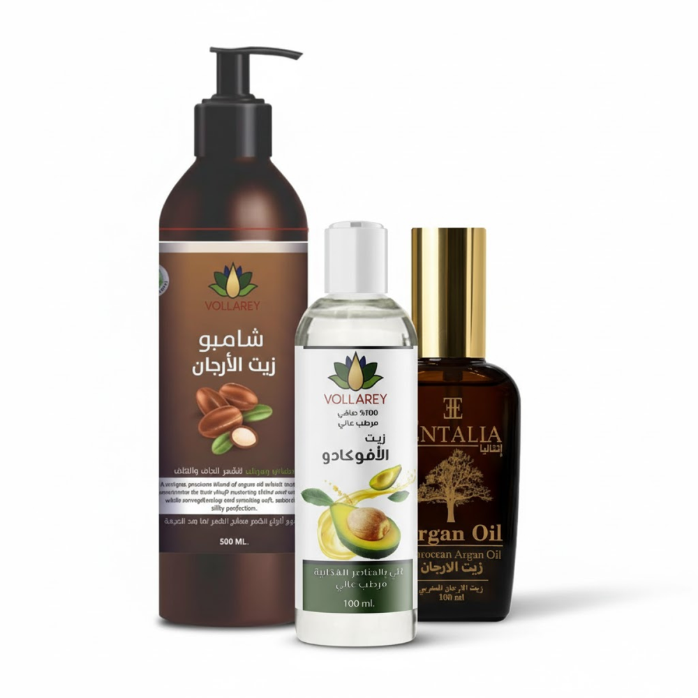 تحتوي المجموعة على مكونات فاخرة مثل زيت الأرجان المغربي وزيت الأفوكادو التي تمنح شعرك النعومة والانسيابية من الجذور حتى الأطراف.